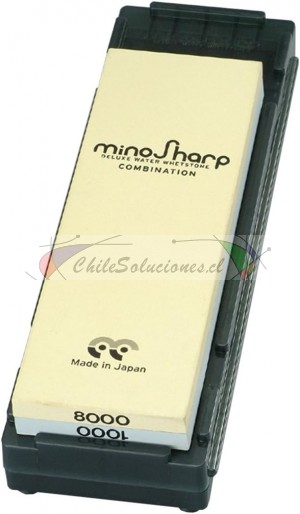 Kit de afilado Minosharp con piedra combinada de grano medio/superfino, completo con soporte y guías. El kit de afilado de cuchillos Minosharp incluye: * Piedra de afilar Minosharp de doble cara, una con grano 1000 y la otra con grano 8000 * Guías Minosharp * Soporte para la piedra de afilar Minosharp * Manual Grado: Grueso/Fino. Grano: 1000/8000