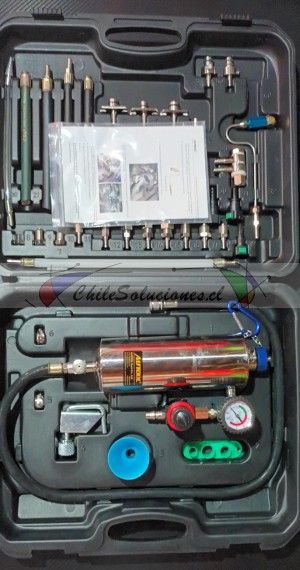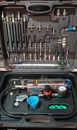El AUTOOL C100 es un kit de limpieza de inyectores y sistema de combustible por barrido diseñado para limpiar inyectores, cámaras de combustión y válvulas de admisión sin desmontarlos. Compatible con vehÃculos de gasolina de EE. UU., Asia y la UE, utiliza adaptadores de alta presión para inyección directa o EFI. CaracterÃsticas y Beneficios Principales: * Limpieza sin desmontaje: Limpia inyectores, el cuerpo del acelerador y el sistema de combustible sin necesidad de desarmar el motor. * Compatibilidad Universal: El kit incluye múltiples adaptadores para casi todos los automóviles y camiones ligeros. * Sistema Presurizado: Permite limpiar con el motor en marcha utilizando aire comprimido (normalmente configurado a 43 PSI o 3 bares) para empujar el limpiador a través de los inyectores. * Versatilidad: Limpia sistemas de combustible de alta y baja presión. * Mantenimiento Preventivo: Se recomienda usar cada 6 a 8 meses para asegurar un rendimiento óptimo del combustible y limpieza de inyectores.