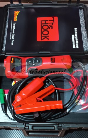 El Comprobador de Circuitos Definitivo con Punta Inteligente El HOOK de Power Probe es una fuente de alimentación regulable, un probador de diagnóstico del circuito y un multímetro digital. Activa los componentes eléctricos con alta corriente de alimentación y toma de tierra regulable de 2 a 65 amperios. También cuenta con un voltímetro digital, un ohmímetro, un amperímetro, con captura de fallo MÍN/MÁX con Smart Tip Advantage (medidor automático y selección de rango) y con modos de diagnóstico avanzados. Características: * Fuente de alimentación regulable (2 - 65 amperios) * Disyuntor de estado sólido (Electrónico) * Smart Tip Advantage (medidor automático y selección de rango) * Hot Shot (Prueba de carga de alimentación y tierra) * Probador de relé de continuidad dual